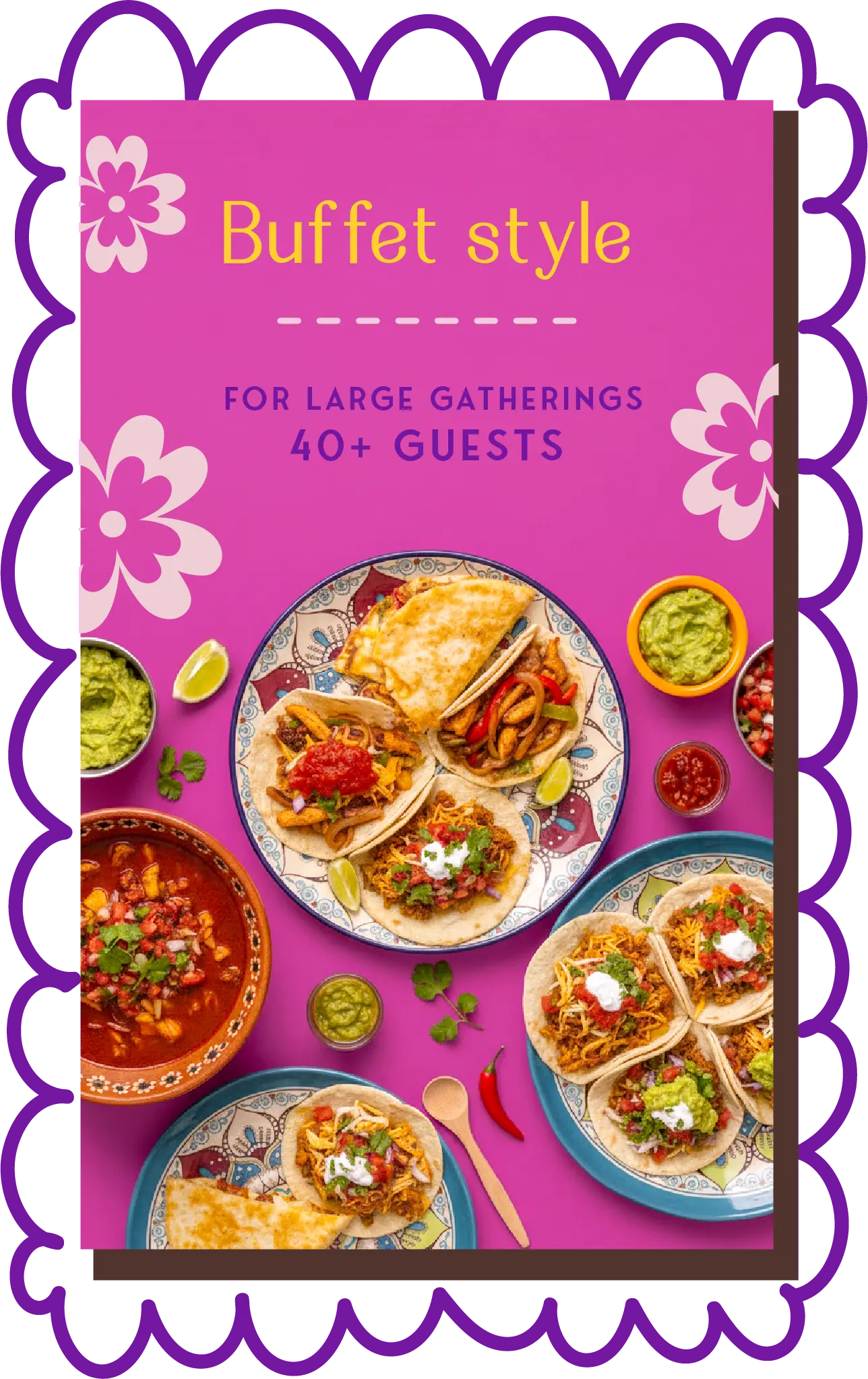 Buffet style – your classics, hot and fresh, built from our top-selling tacos.